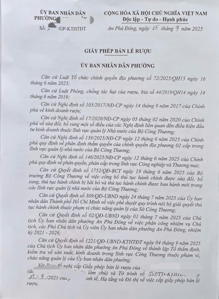 THỦ TỤC XIN GIẤY PHÉP BÁN LẺ RƯỢU