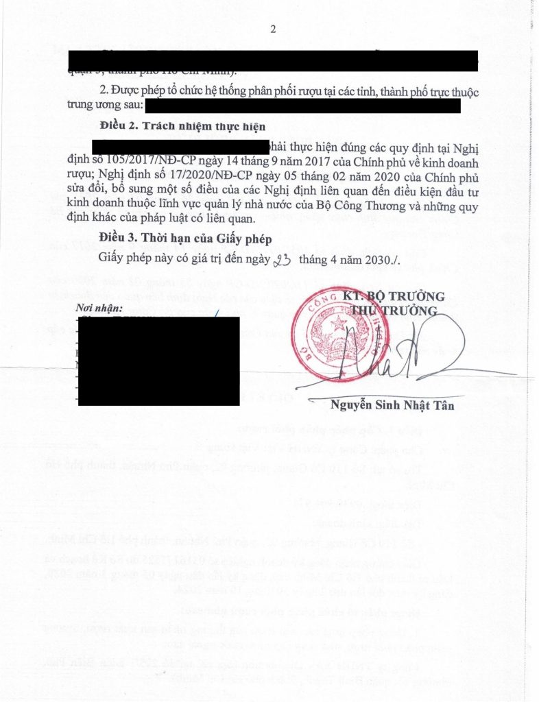 4 | Văn bản giới thiệu hoặc hợp đồng nguyên tắc của thương nhân sản xuất rượu, thương nhân phân phối, thương nhân buôn bán rượu. | 02 Bản sao chứng thực | Quý khách hàng |